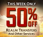 If you’ve been thinking about switching realms or making other changes to your character, now’s the perfect time—because this week all character services are 50% off!